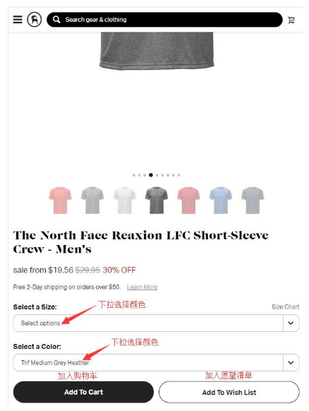 4、注册完成之后,挑选喜欢的产品,选择尺码,颜色,加入购物车: