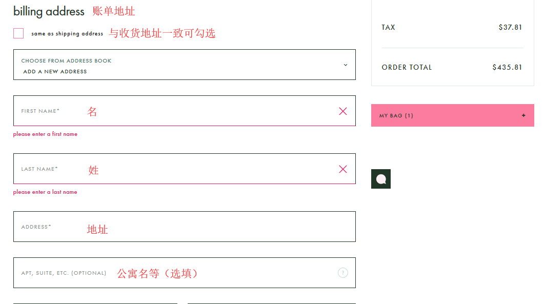 步骤5:填写账单地址