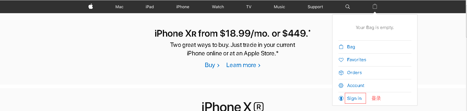 这里我们以购买iPhone XR为例,点击Buy进入到购买页面