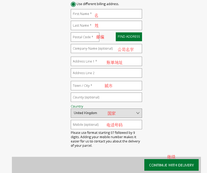 注意:The Body Shop不支持直邮,所以这里收货地址应该填写转运公司给你的地址,并且不勾选将该地址作为账单地址,账单地址应该填写信用卡的真实账单地址,这样才能降低砍单的概率,接下来我们就开始填写账单地址