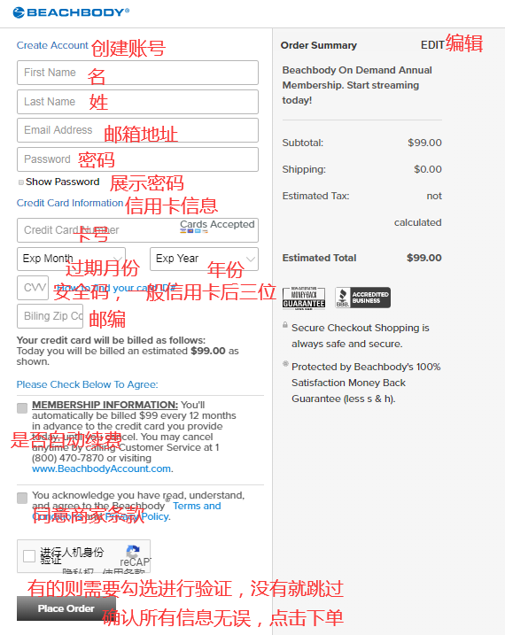 步骤3:填写相关信息(名字、邮箱、信用卡等)并下单