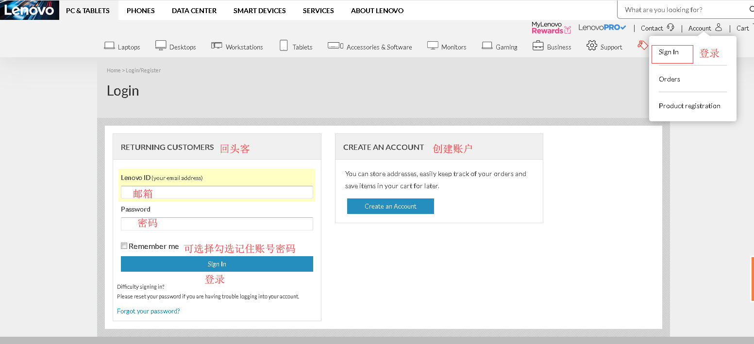 步骤二:注册联想美国官网账号