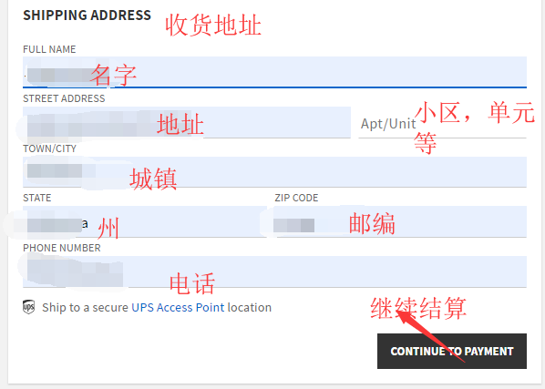 由于Banana Republic网站不能直邮中国,所以地址栏必须输入提前找好的转运公司所给地址,点击continue进行下一步。