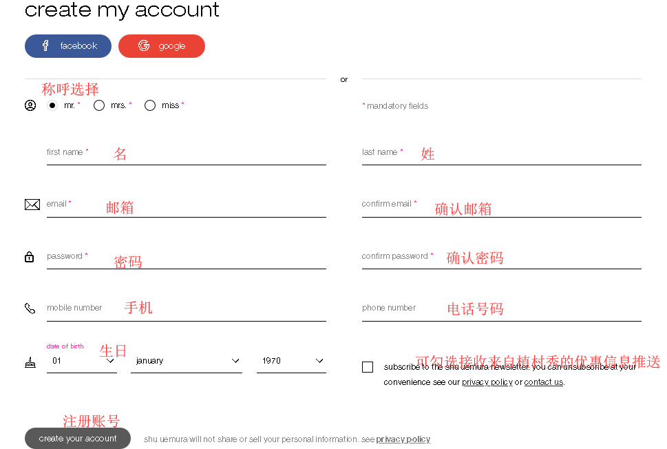 已有账号的小伙伴直接输入邮箱、密码,点击“Sign In登录”即可。如果你还不是会员的话,就点击旁边的“Join Shu Uemura”注册新账号。
