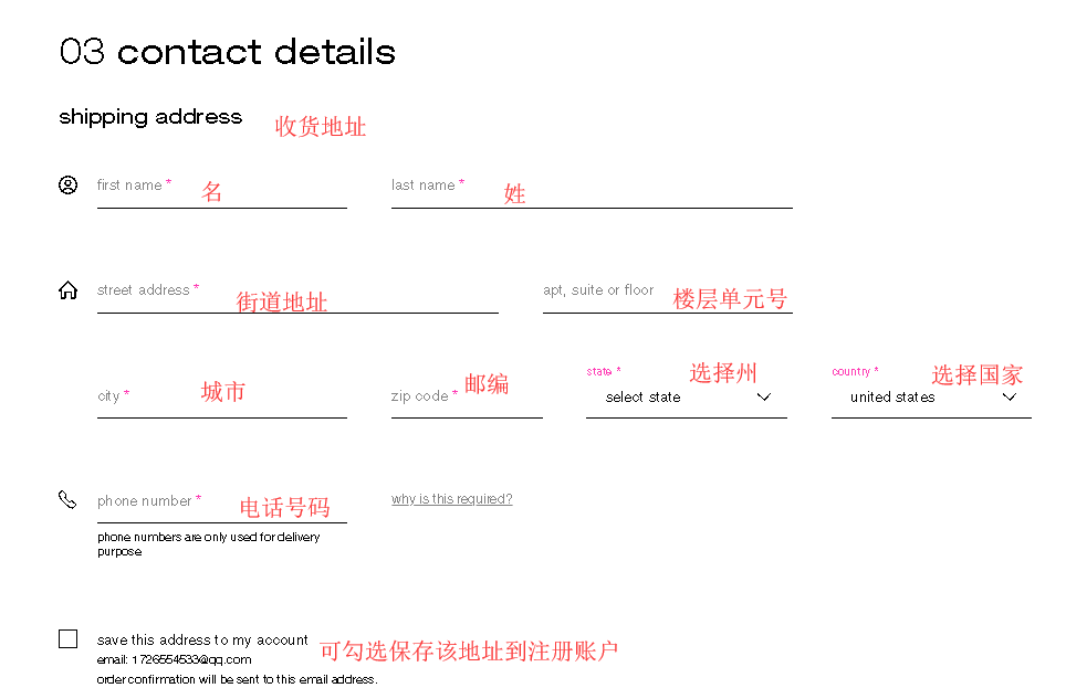 接下来需要填写收货地址信息。(因为植村秀Shu Uemura美国官网不支持直邮中国,所以下面的收货地址应该填写转运公司的仓库地址)