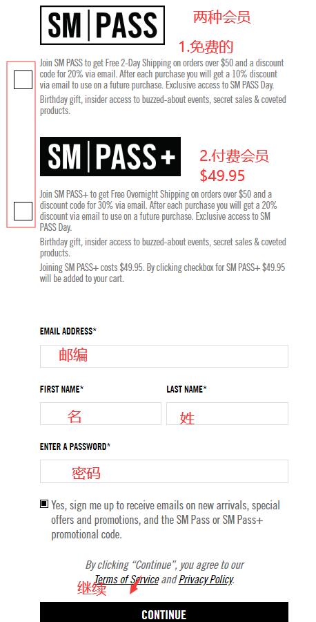 1)在商家首页顶部找到如图所示,点击注册商家会员,有两种会员可选,一种免费,另一种收费。SM PASS+会员首单超过$50享受8折优惠及免费2天送货服务;SM PASS会员超过$50享受7折&免费通宵送货服务