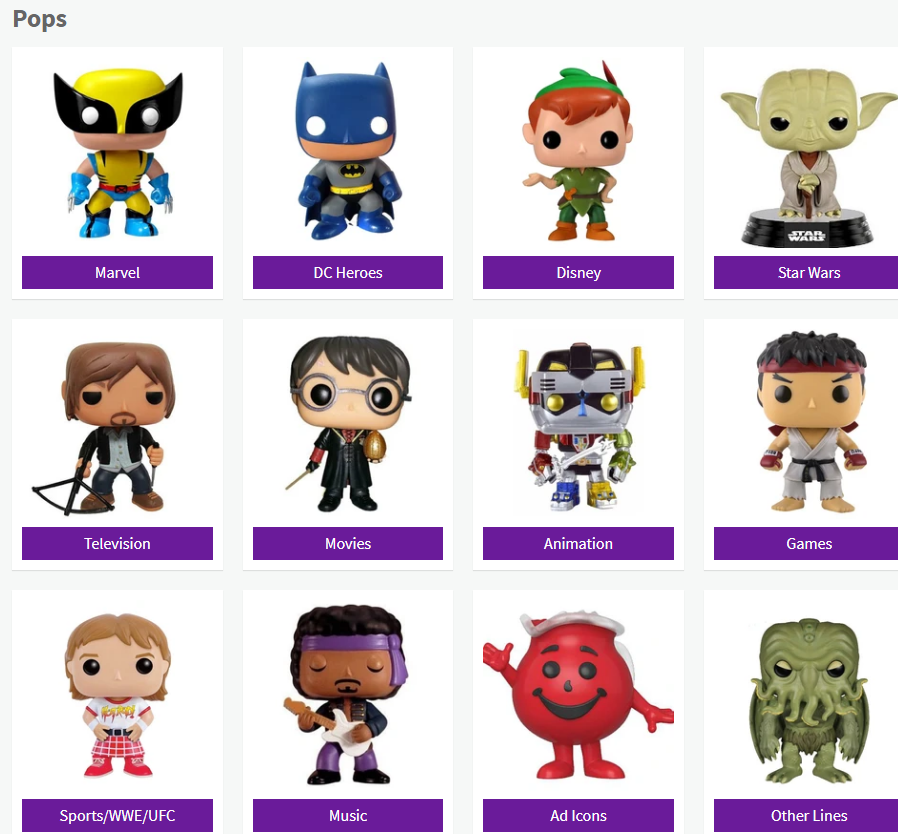 【网站介绍】:FUNKO是一家坐落在美国华盛顿州埃弗里特市,以经营流行文化创意玩具为主的公司。2010年美国圣地亚哥国际动漫展(Comic-Con )上,FUNKO首次推出POP!系列搪胶收藏玩偶,产品独特的创意和时尚的造型,不仅得到了世界各地搪胶收藏爱好者的热烈追捧,还受到了小罗伯特·唐尼、克里斯·埃文斯等众多明星的喜爱和收藏。短短数年中POP!迅速发展成为美国本土收藏玩偶市场明星品牌,并获得了包括漫威、DC、迪士尼、皮克斯、环球影业、梦工厂、派拉蒙、美国有线电视网、NBA等超过150个世界知名公司的授权,电影动画球星等授权形象多达5000余种。